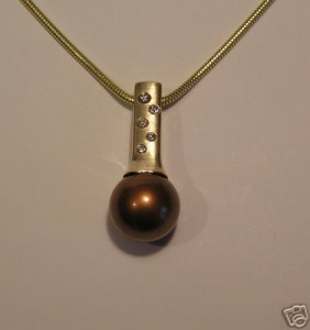 * Collier SCHOKOPERLE Brillanten 0,12 ct 585er Gold: Gelbgold glänzend
