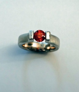 * TOPDESIGN Spannring 585er Weißgold Mandaringranat 0,60 Carat: Weißgold matt 62
