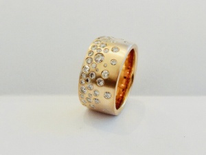 Eleganter Ring „Sternenhimmel“ mit 50 Brillanten von 1,52 Carat 585er Gelbgold oder Roségold (matt oder glanz).