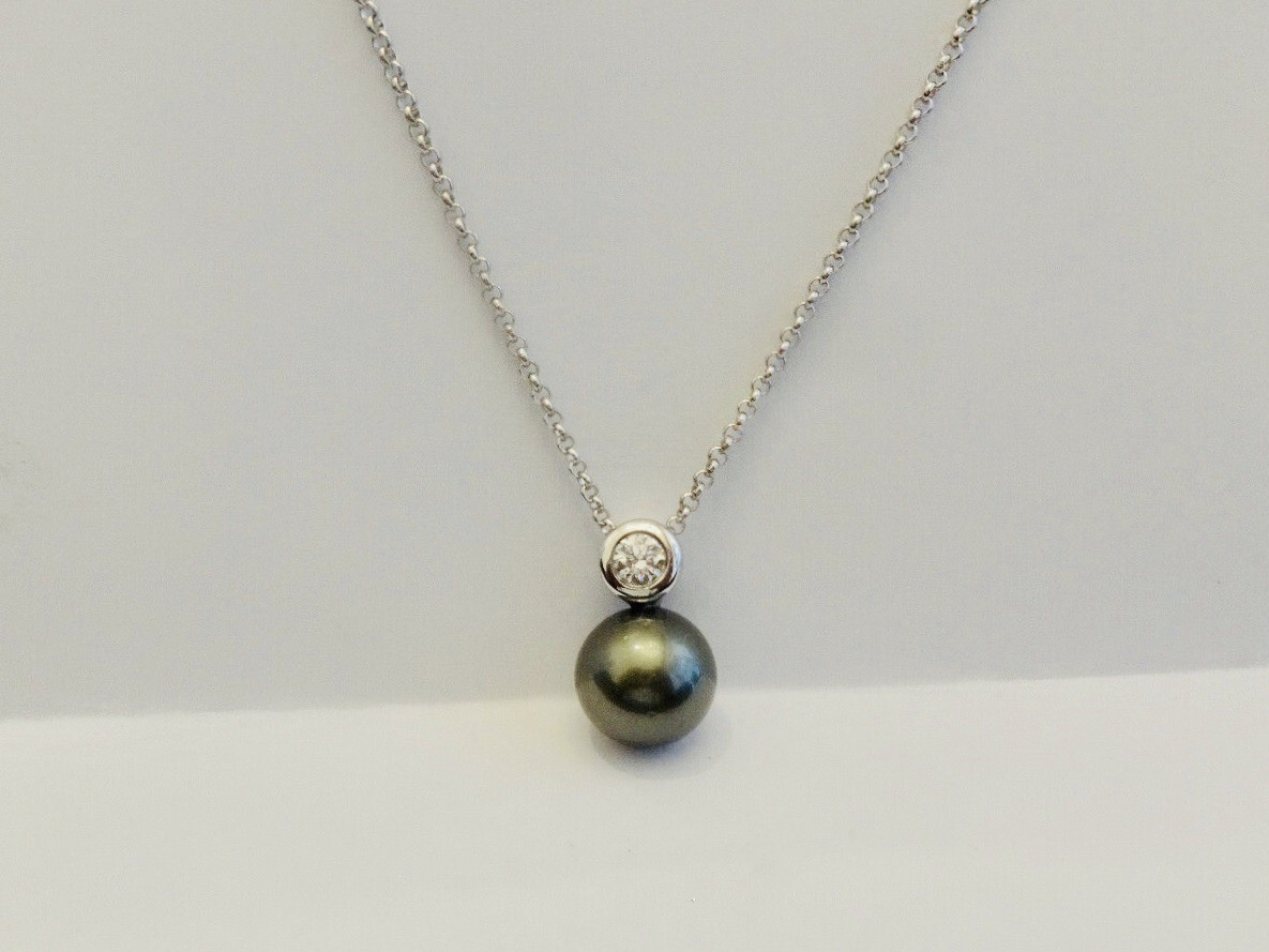 Elegantes Collier mit einem Brillanten von 0,25 Carat und einer Tahitiperle von 12mm Durchmesser in 585er Weißgold.
